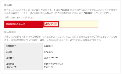 振込IDとは、DUGA(デュガ)が誰から入金があったのかを識別する顧客コードです。振込をするときに振込依頼人名の前に振込IDを付けて振り込みます。
