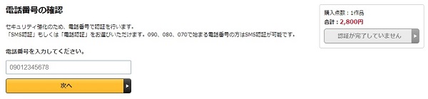 - クレジットカードで支払いをする場合は電話番号の確認があります。「SMS認証」もできるので、利用できる電話番号を入力して認証手続きを行ってください。